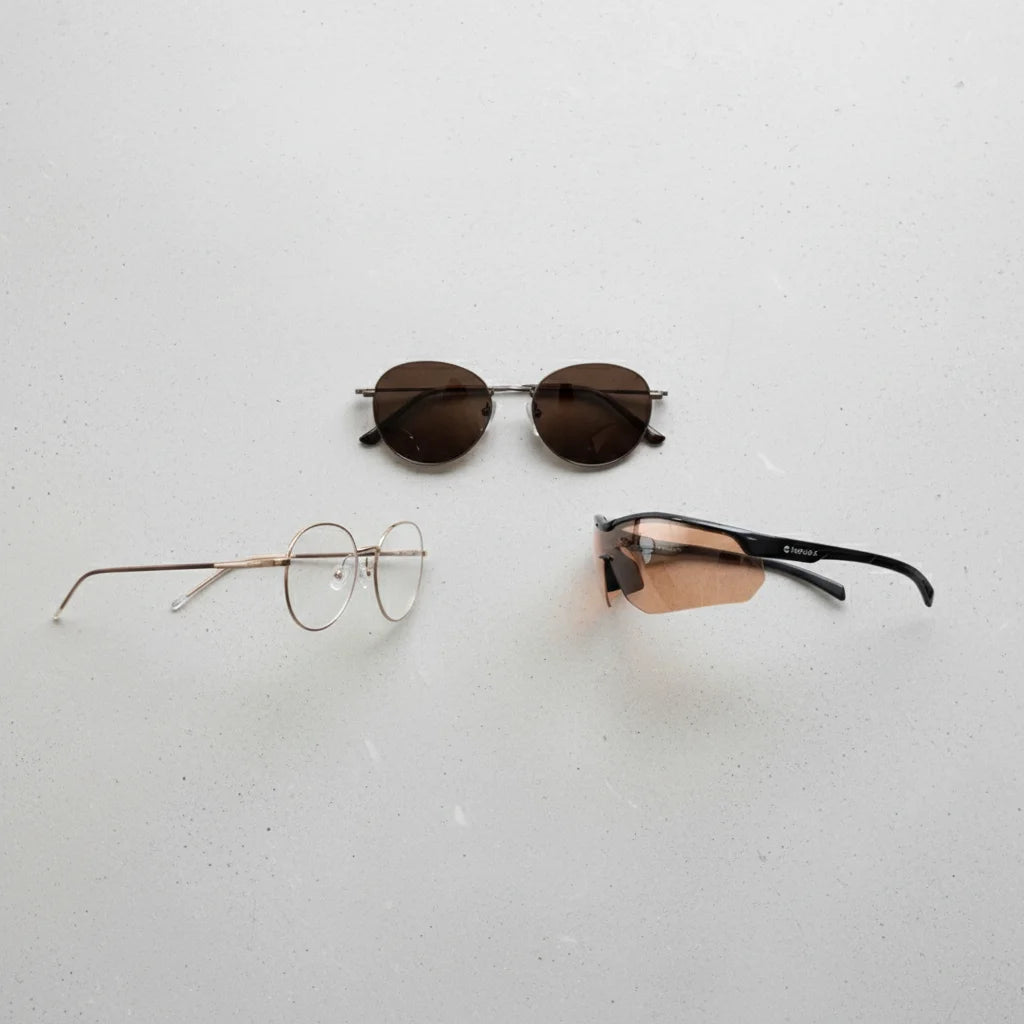 Tu reçois 3 paires de lunettes essentielles : une pour le bureau (anti-lumière bleue), une pour le style (solaires rondes tendance) et une pour l'aventure (solaires sportives). C'est le kit complet pour chaque facette de ta vie, sans compromis sur la protection ou l'allure.